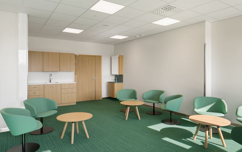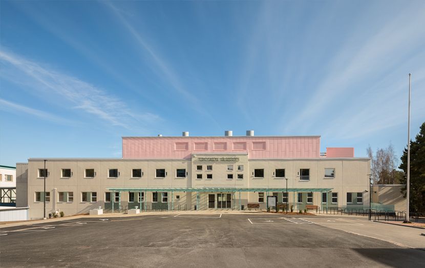 Peruskorjauksen yhteydessä rakennuksen sisätilat uudistettiin kauttaaltaan ja ilmanvaihtokonehuonetta laajennettiin. Piha-alueelle tehtiin ravintolaa varten terassi, ja kaikki pintamateriaalit ulkona uusittiin. Terveysaseman hankkeen yhteydessä laadimme myös Länsi-Uudenmaan hyvinvointialueelle uudistetun opasteohjeistuksen, jota on sovellettu terveysaseman tiloissa.